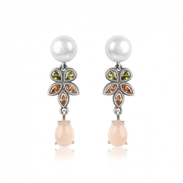 Con la colección Honey Moon sacamos a relucir nuestro lado más romántico pensando en las novias Sunfield Lovers que aman las perlas. Como resultado tenemos unos pendientes que evocan equilibrio, carácter i sofisticación. Fabricados en plata de ley 925 con acabado envejecido combinan, de arriba abajo, una perla cultivada, dos circonitas peridoto talla lágrima, tres circonitas champagne talla marquise y un cabujón liso talla lágrima de cuarzo rosa.