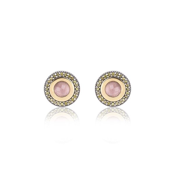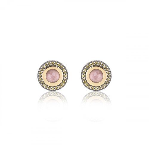 La mini colección Irati de Sunfield busca la inspiración en las profundidades de los bosques del Valle de Irati, lejos de la influencia de las grandes urbes, dónde conectamos con lo orgánico, con la tierra. Este modelo está fabricado en plata de ley 925 con acabado envejecido de 11,5 mm de diámetro. Como protagonista luce en su centro un cabujón facetado de turmalina rosa, al cual lo rodea un bisel de oro amarillo de 9 k y a circonitas peridoto talla brillante.